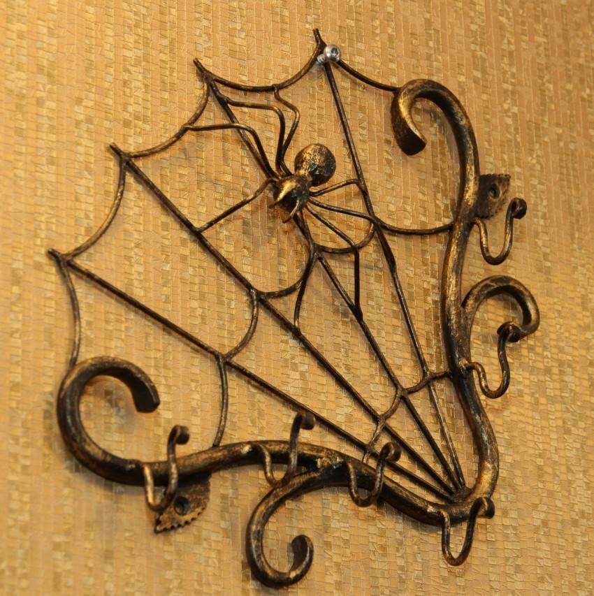 Следующую ключницу сделали из большого ключа, к которому прикрепили несколько крючков. Такое приспособление выполнено под старину и имеет универсальный цвет.