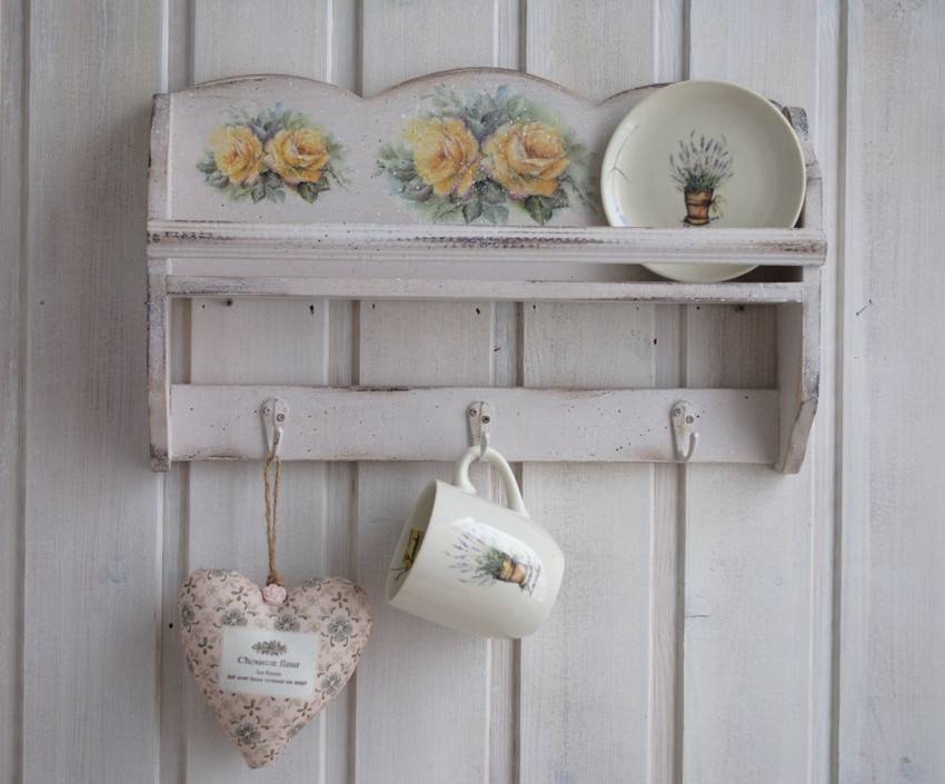 - Настенной. Располагается на стене у входной двери, в зоне непосредственного доступа и обзора. Это не только привычные крючки, но и настоящие произведения декоративного искусства из фанеры, решения, выполненные по технологии декупаж.