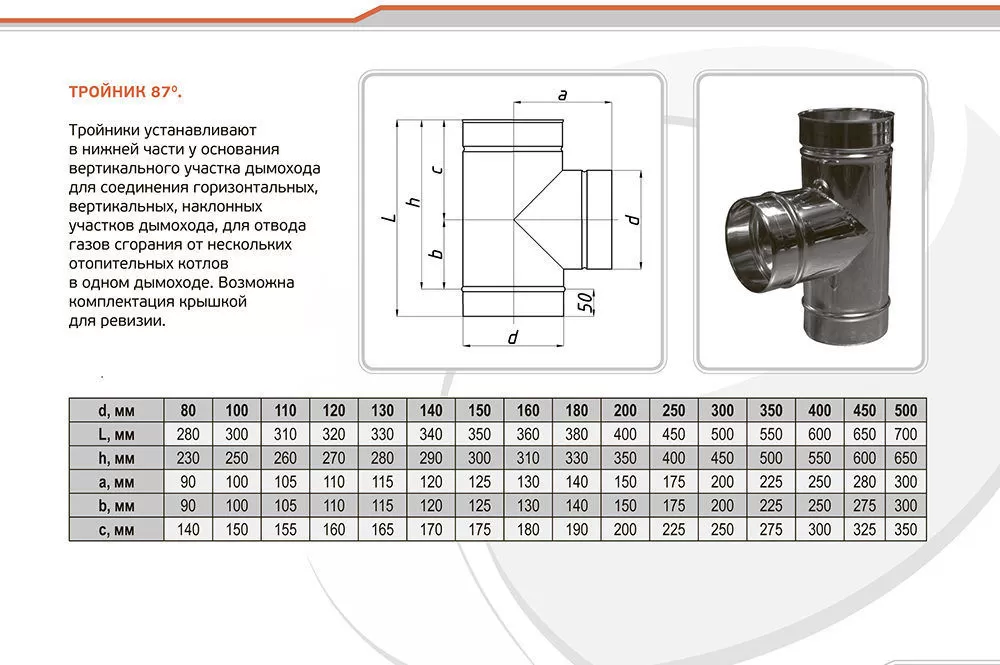 Тройник для дымохода и его размеры