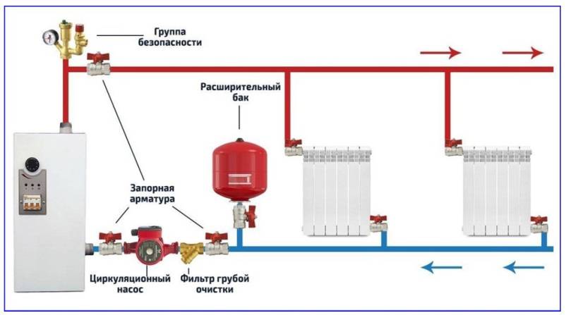 Прогретая жидкость поступает к радиаторам по одной отдельной трубе, а отводится по другой.