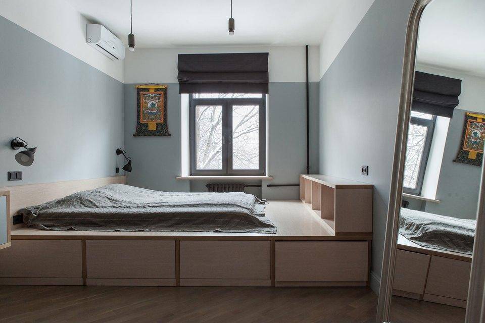 Этот параметр особенно важен для владельцев малогабаритных квартир. Подиум предполагает свободное пространство в основании, где могут быть спрятаны сезонные вещи или предметы, в которых нет постоянной необходимости.
