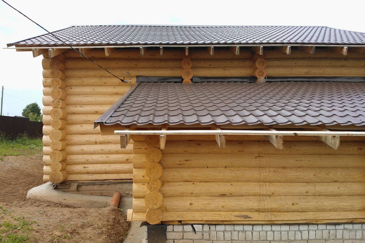 При желании крыши дома и пристройки получится объединить. Для этого верхний ряд крыши пристройки подкладывают под нижний ряд крыши дома, стыки гидроизолируют.