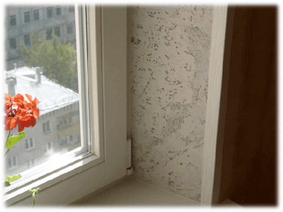 Рассматривая структуру материала, следует отметить, что напоминает она своеобразную губку, что обуславливает их хорошую теплоизоляцию. Следует отметить и то, что после установки такого типа откосов полностью исключается возможность появления конденсата. Если же каким-либо образом он имеет место, то это обуславливается нарушениями при оборудовании системы вентиляции помещения.