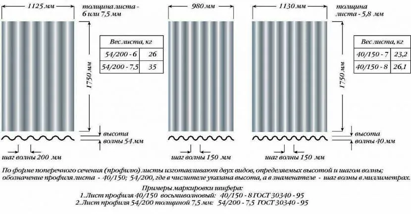размеры различных листов шифера