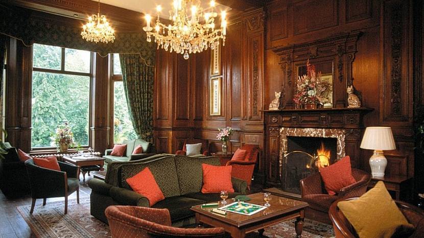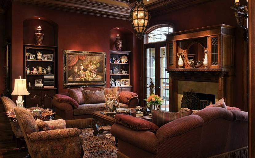 На фото образец типичной викторианской гостиной, оформленной в характерной красно-коричневой гамме