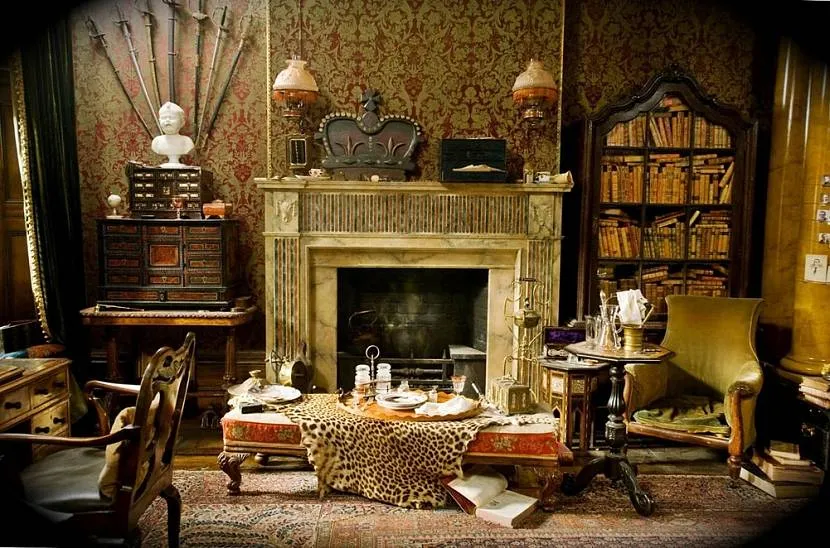 Чтобы скопировать настоящий викторианский стиль, каждую стену нужно украсить обрамленными фотографиями, китайскими рисунками, теми же картинами, а все поверхности дополнить цветами в вазах и аксессуарами.