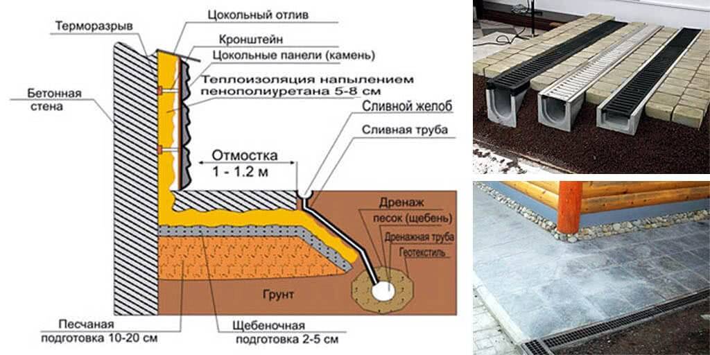 Устройство отмостки разных видов