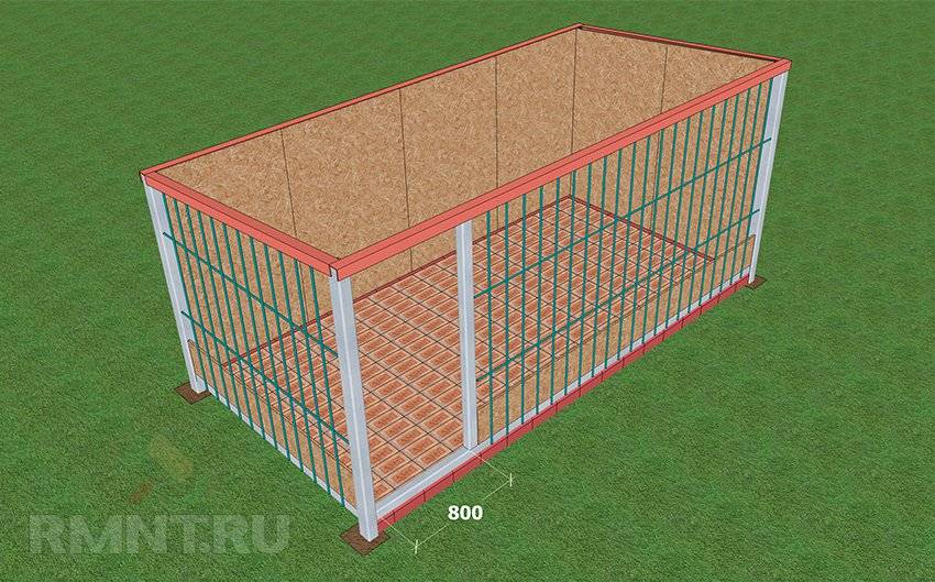 Важно! Пол в вольере должен быть наклонным от боковых стенок к центру и в сторону фронтальной стороны. К крыше особых требований нет, важно лишь наличие большого козырька