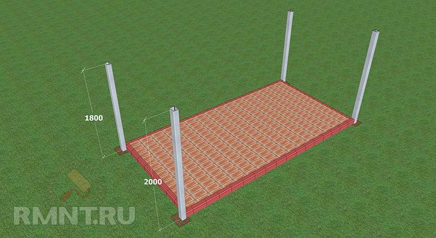 Чтобы создать нужный зазор, необходимо будет приподнять настил на подставку, опорой послужит кирпичная кладка.