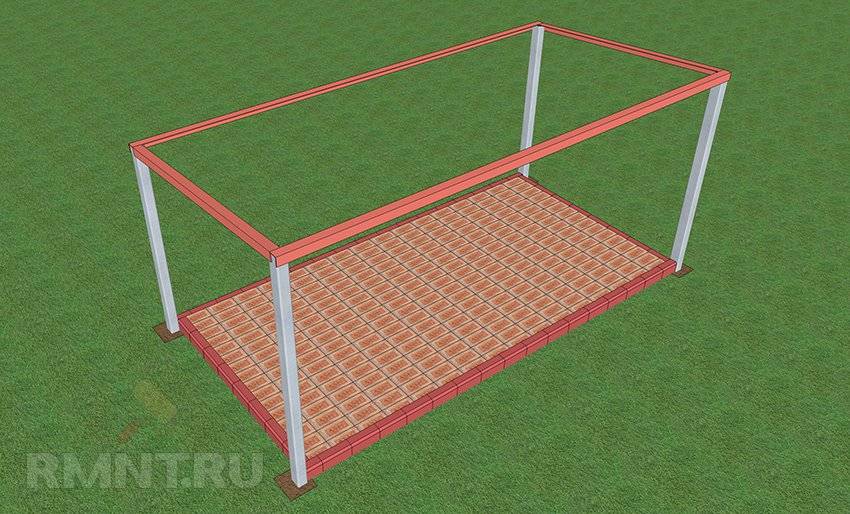 Вольер — достаточно легковесная конструкция, основать её можно всего на нескольких вертикальных стойках. Для каркаса со стороной до 4 метров будет достаточно только угловых опор. Если больше — следует добавить промежуточные стойки, можно даже меньшего сечения.