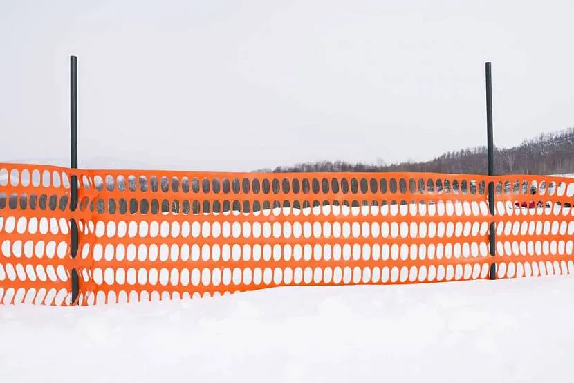 - Пленка для ограждения строительной площадки оранжевого цвета.