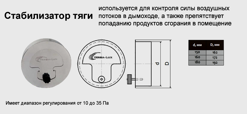 Стабилизатор устанавливается на выпуск дымохода и выполняет следующие функции: