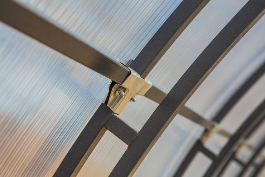 Для крепления листов поликарбоната к металлическому каркасу лучше использовать стальные уголки, которые не позволят конструкции расшатываться и деформироваться