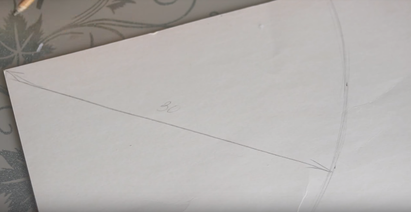 1. Наша елка будет высотой в 30 см. Чтобы сделать основание, берем циркуль (надеюсь у вас еще валяется где-то эта штука) и отмечаем на куске плотного картона полукруг диаметра 30 см.