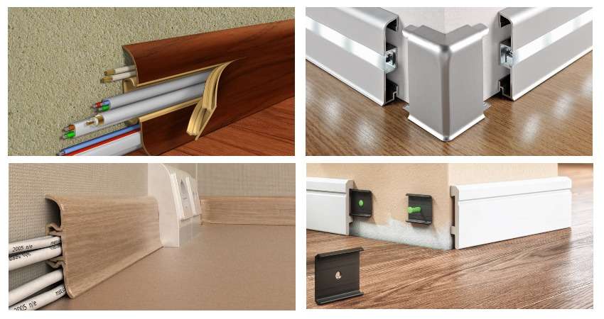 Существует несколько видов профилей плинтусов, одни имеют съемные части, которые легко позволяют менять электрический или телефонный кабель. Другие имеют гибкие края, которые скрывают неровности стен или пола.