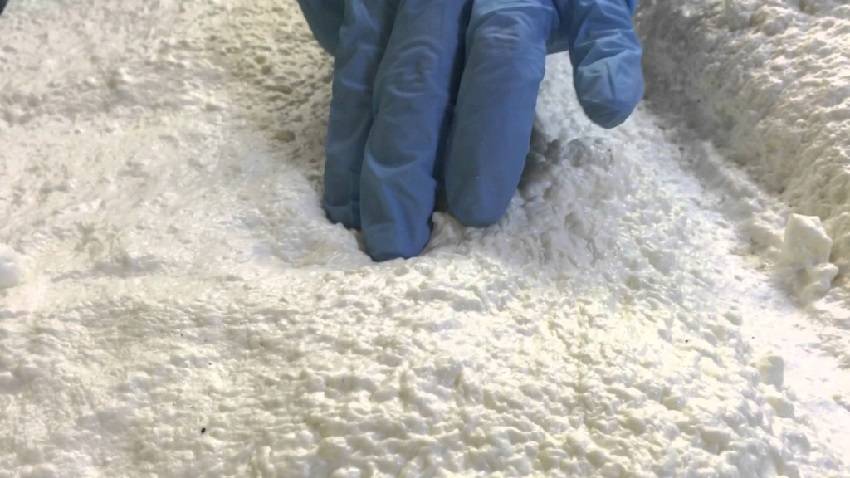 При смешивании двух компонентов идет активное газообразование — выделяется преимущественно углекислый газ. Он оказывается заключенным в тончайшую полиуретановую оболочку, что и дает высокие показатели по теплоизоляции (углекислый газ плохо проводит тепло).