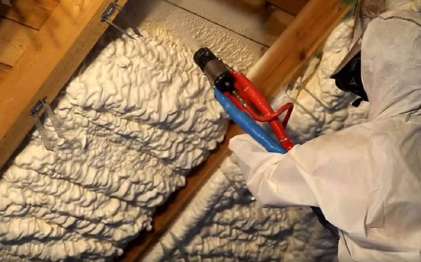 Отдельная паро- и гидроизоляция не нужна, если используется пенополиуретан с закрытой структурой, так как его влагозащитные свойства очень высоки. Материал с открытыми ячейками требует установки пароизоляционного слоя.