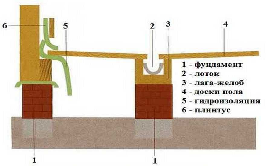 То есть, конструктивно это обычный деревянный пол. За исключением того, что надо делать сток. Его делают либо у противоположной от полка стены, либо как на рисунке выше, посередине.