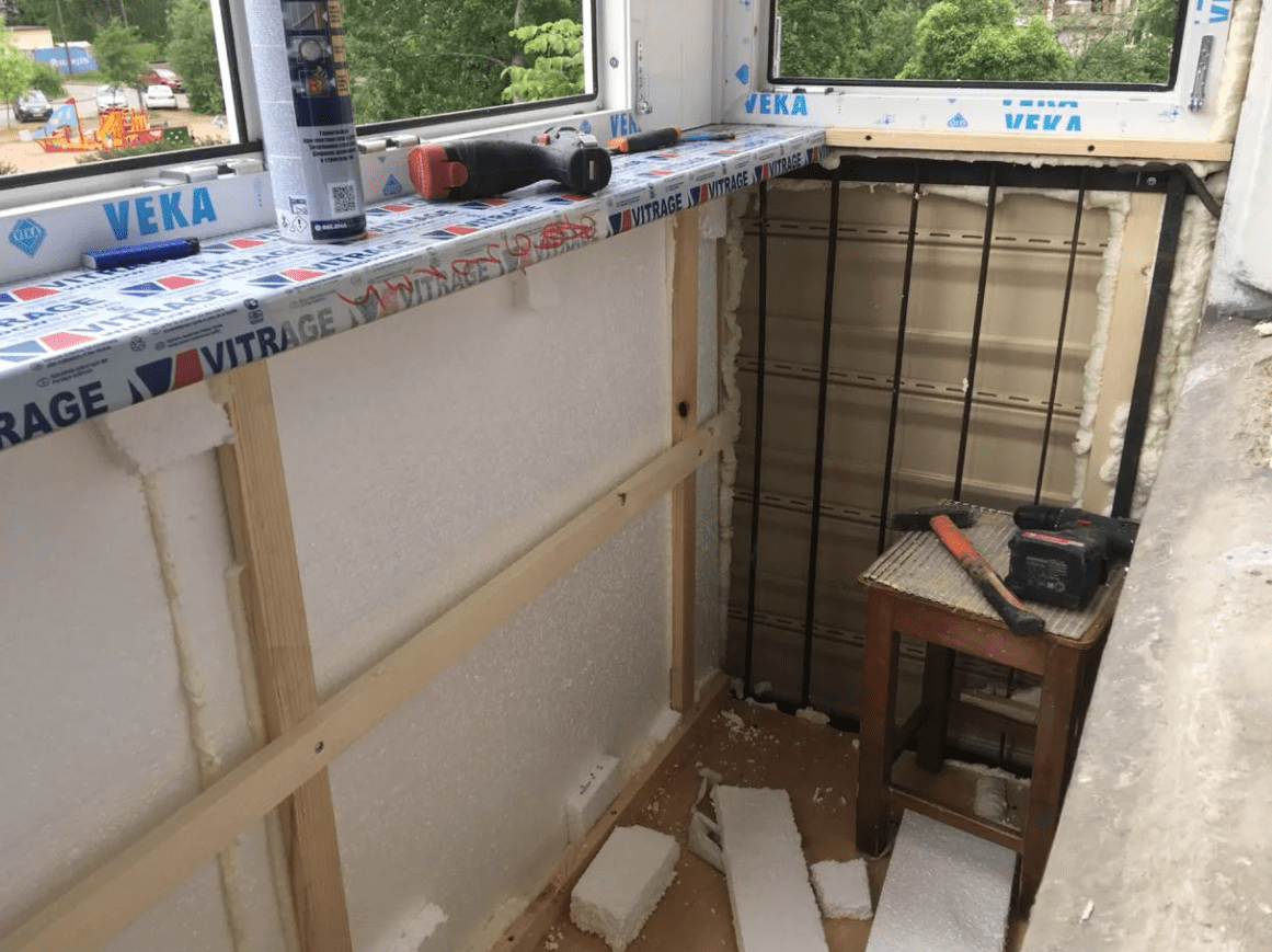 В дальнейшие работы входит отделка балкона – настилается пол, выполняется остекление и декоративное оформление стен.