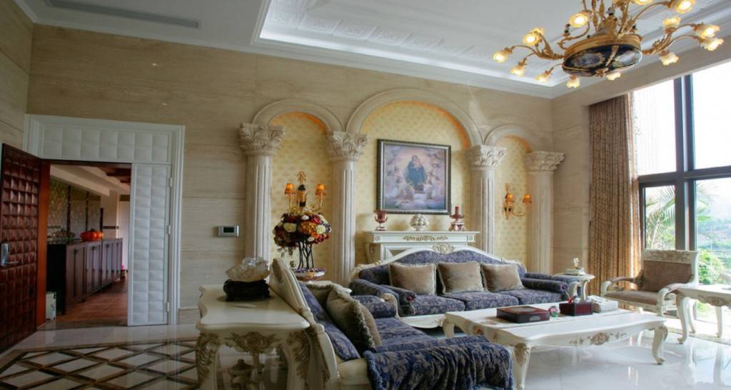 - пол помещения должен быть выполнен из паркета или мрамора, а в центре помещения непременно должен располагаться ковер с витиеватым узором;