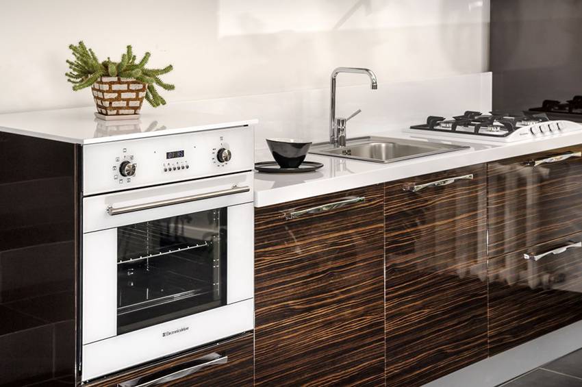 С точки зрения дизайна, существует множество вариантов духовых шкафов. Для помещений, выполненных в классическом стиле, рекомендуется приобретать устройства с прозрачной передней панелью. Современный же интерьер украсят духовки, имеющие черную или металлическую расцветку. Однако, прежде всего, нужно решить, как встроить духовой шкаф, на какой высоте и т. д.