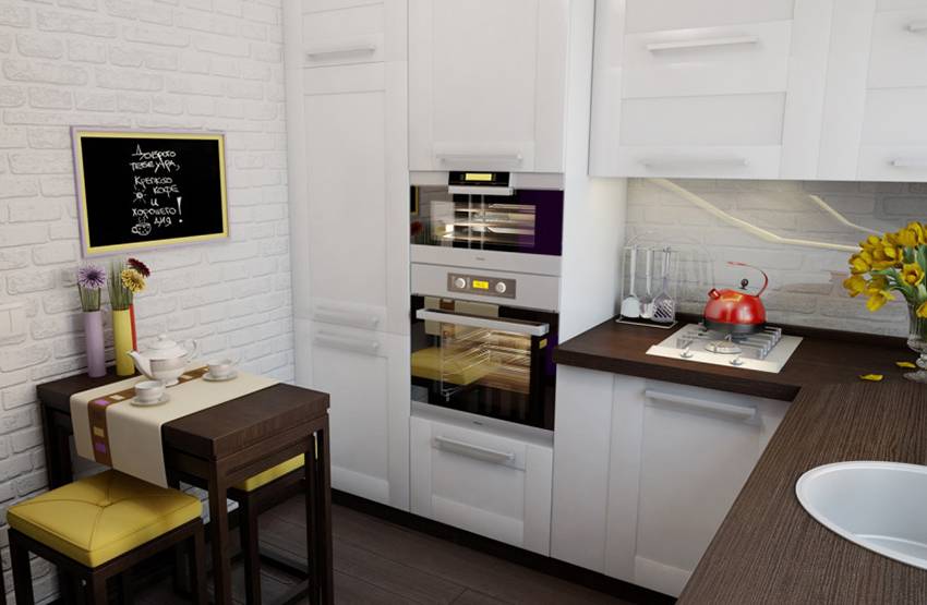- использование встроенной бытовой техники, правильное размещение рабочих поверхностей;