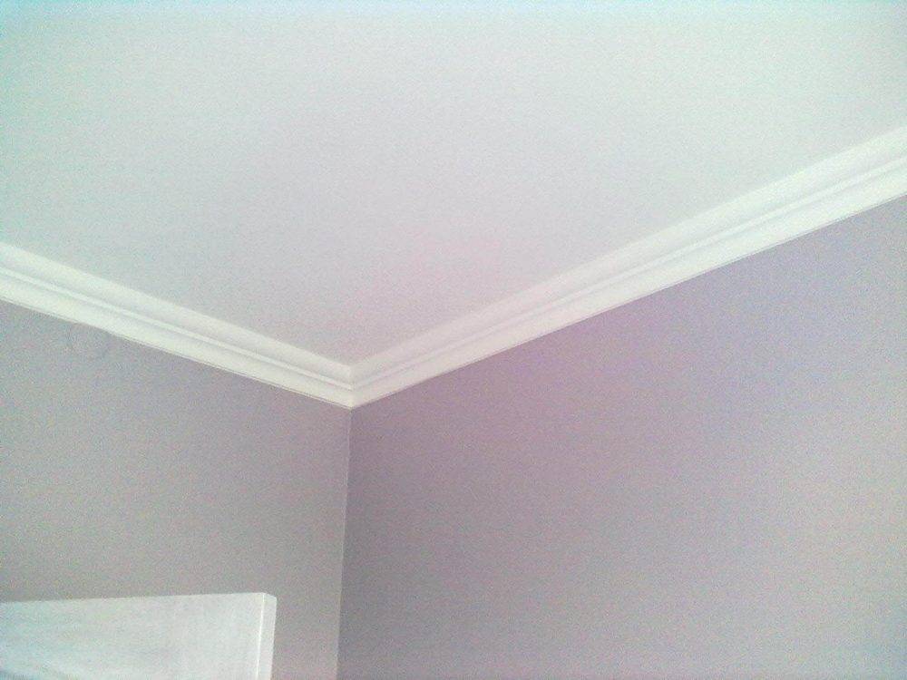 - Потолочные багеты могут подвергаться окраске. Если слой наносится с помощью кисти, то нужно ее раскатать вальным способом, до точки ее соприкосновения со стеной.