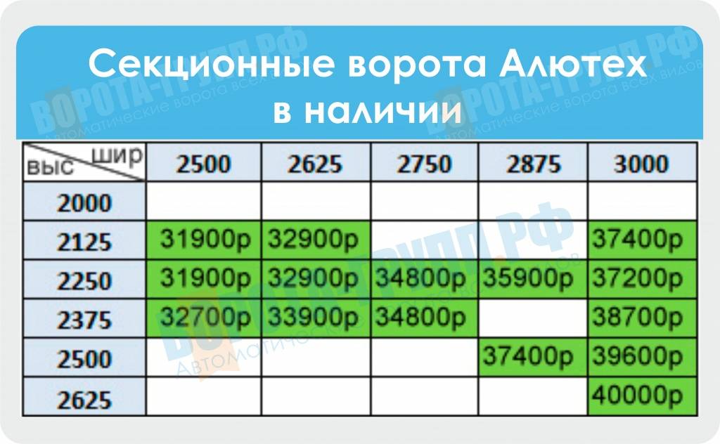 Популярные размеры комплектов ворот Алютех (Белоруссия) в наличии.