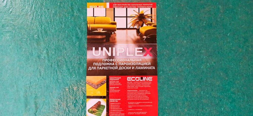 Uniplex — это продуманная основа для укладки плавающих полов, таких как: ламинат, паркет. Секрет в том, что войлок экологически чистый и имеет высокую плотность. Это обеспечивает минимальную усадку и положительно сказывается на прочности замкового соединения.
