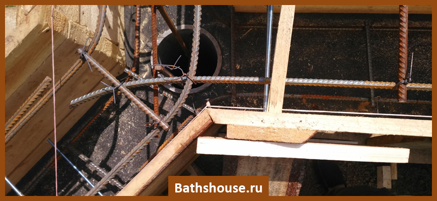 металлокаркас не должен выступать за пределы бетонной конструкции, важно предусмотреть защитный слой в 50-60 см для защиты от коррозии.
