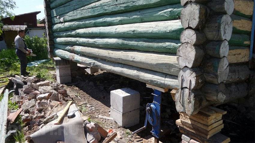 Чаще всего поднять деревянный дом надо, когда возникают проблемы с фундаментом