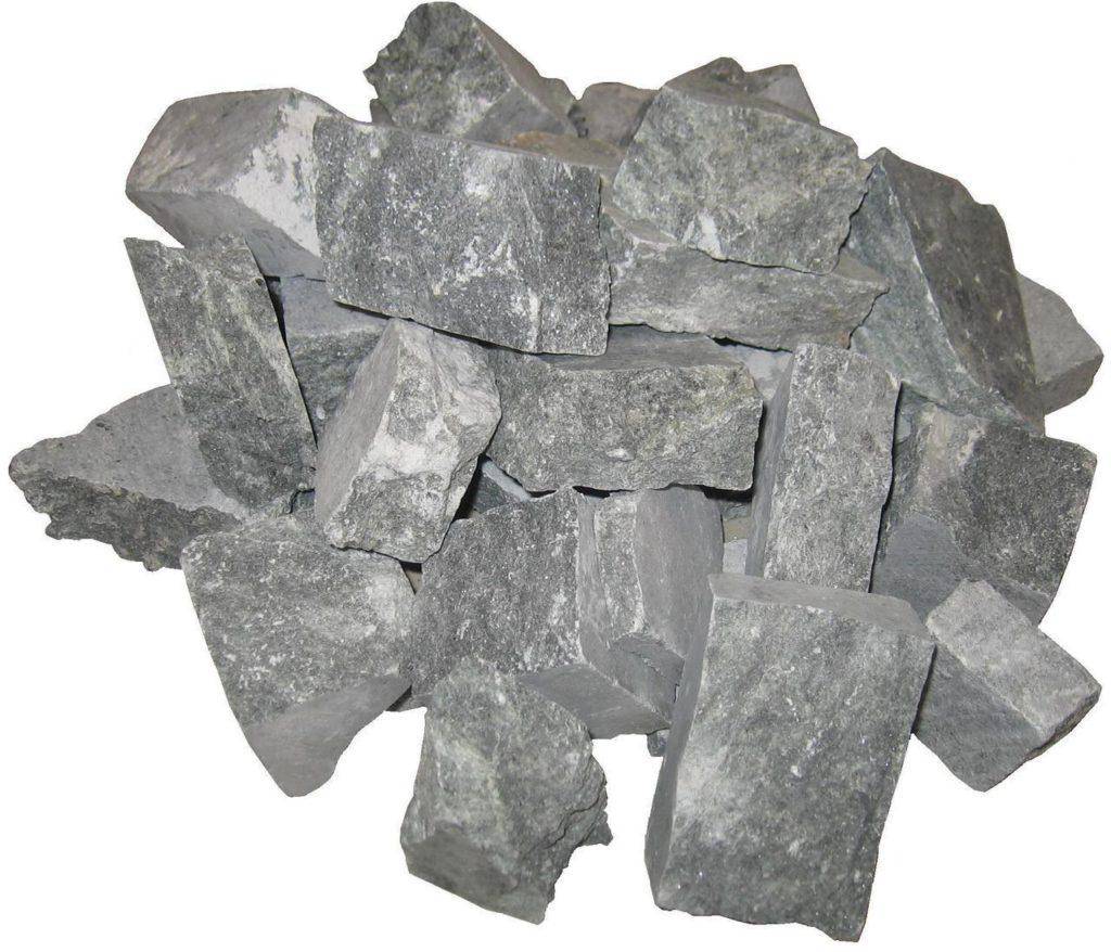| Талькохлорит | Камни серых оттенков со светлыми полосами и вкраплениями. Обладает высокой теплоемкостью, не образует запахов при нагревании и намокании. | Пылит, содержит небольшое количество влаги, что приводит к постепенному разрушению в условиях бани. |