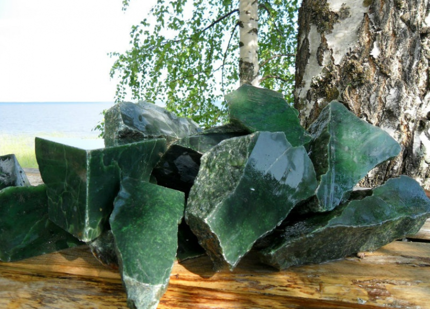 | Нефрит | Зеленый минерал. Выглядит привлекательно, обладает лечебными свойствами, долго сохраняет тепло. | Дорого стоит. |