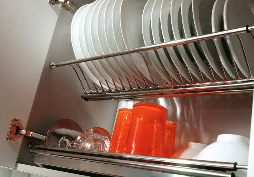 Многие хозяйки задаются вопросом оптимального расположения многочисленной посуды внутри кухонной мебели. Увеличить удобство пользования и вместительность шкафа можно путем грамотного подбора внутреннего наполнения. На рынке мебели представлен широкий выбор систем хранения для посуды.