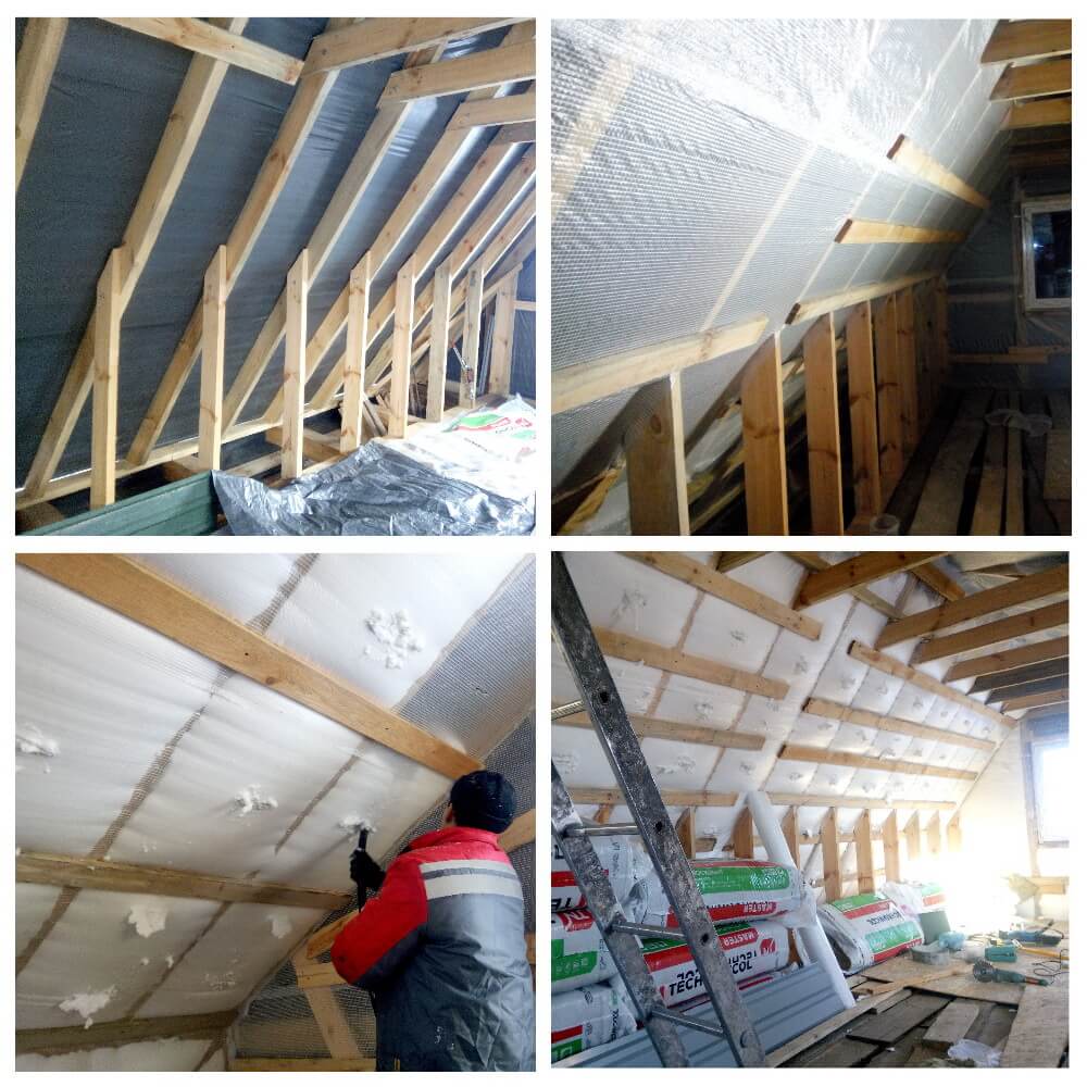 При подготовке к утеплению нужно хорошо проверить кровельное покрытие, если оно уже есть. При первоначальном покрытии или замене кровли гидроизоляционную плёнку расстилают по стропилам, устанавливая после этого определённое защитное покрытие: металл, черепицу и т.д.