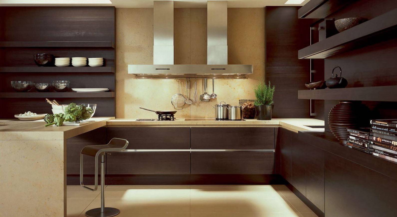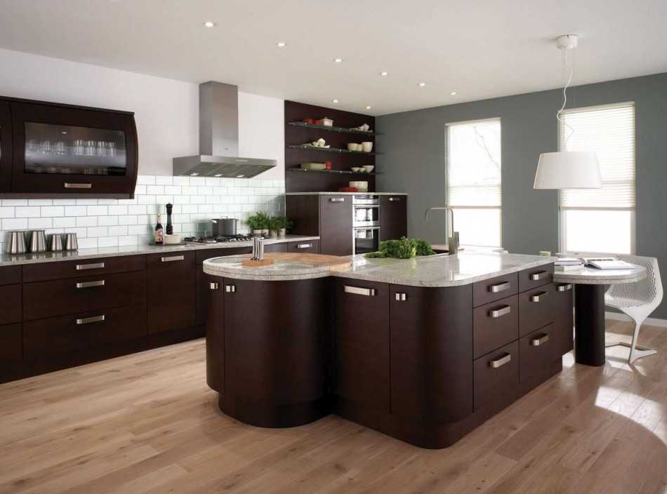 С помощью темно-коричневой мебели можно создать стильный и гармоничный интерьер кухни