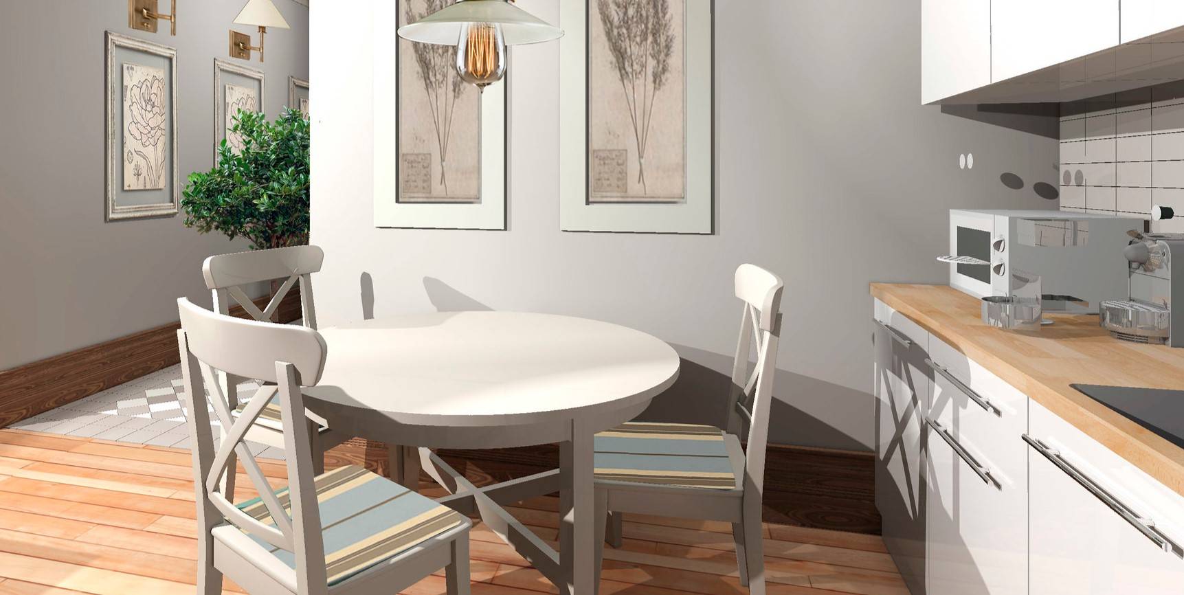 Самое важное это учесть все размеры и компактно расставить мебель и холодильник с остальной техникой. Вот несколько советов, которые помогут облегчить проектирование: