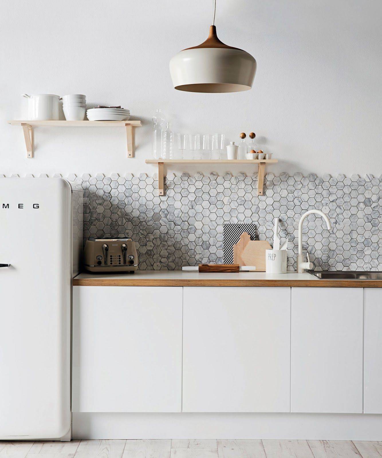 Чтобы интерьер в стиле минимализм не получился слишком строгим, его можно разбавить креативными полочками, доской для записи важных заметок или просто оригинальной настольной лампой.