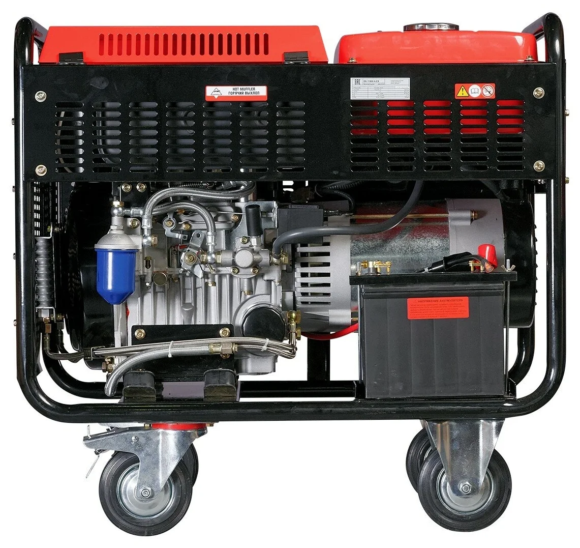 Здесь большой бак и генератор спокойно работает без дозаправок. С запуском проблем не возникает. Мощность отличная, 10 кВт предостаточно для большого загородного дома.
