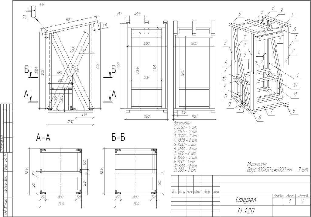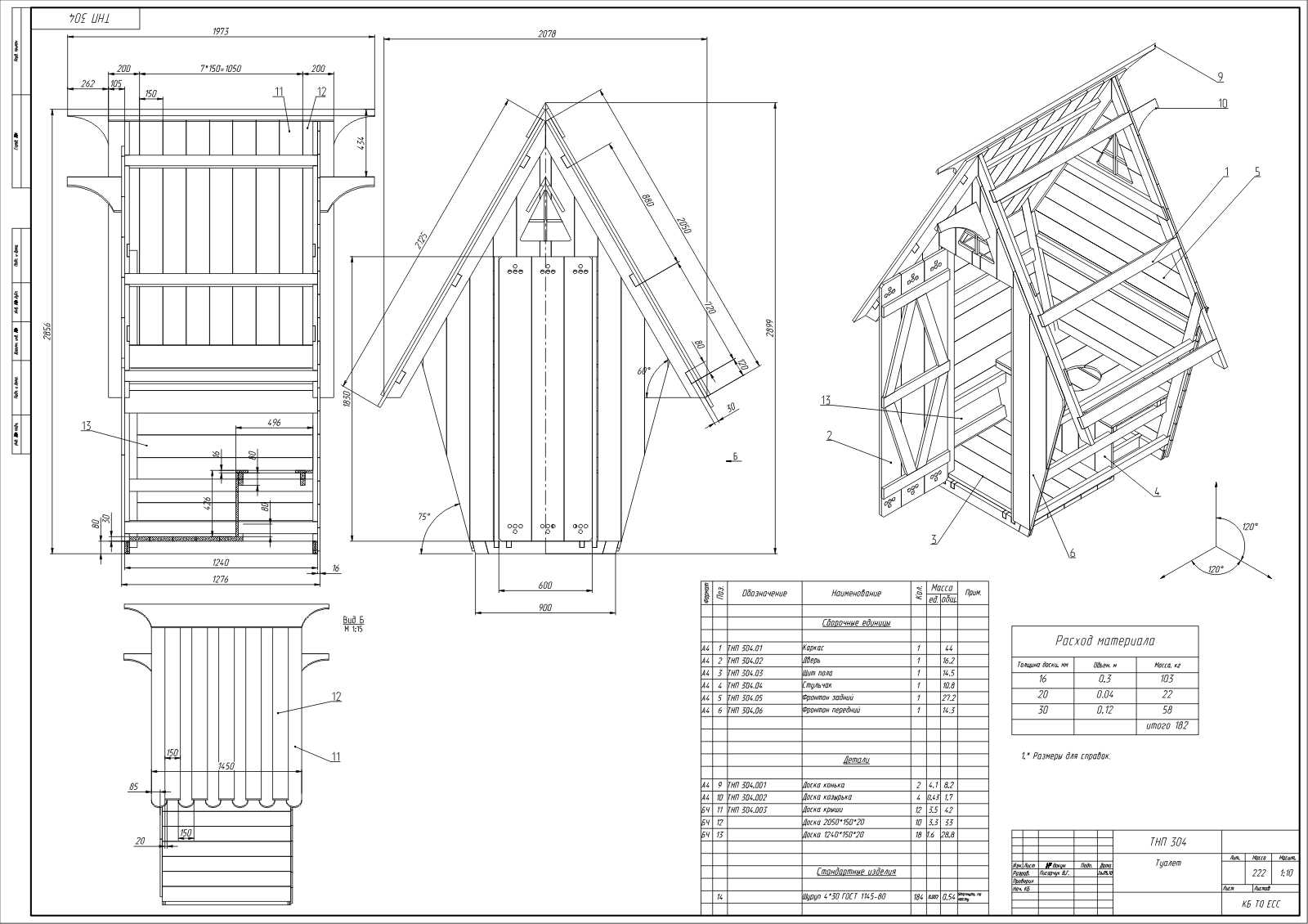 Деревянный туалет для дачи своими руками: чертежи и размеры