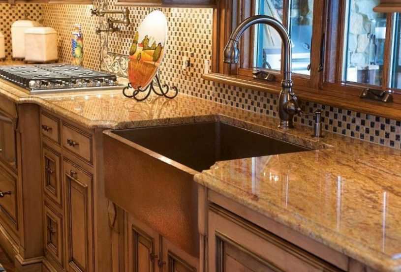 Роскошная кухонная мойка из мрамора или гранита – штучный товар и производится только по персональному заказу. Один из главных минусов каменной раковины для кухни – её вес. Дороговизна изделия влечёт за собой дополнительные расходы на монтаж и подходящую устойчивую тумбу. Зато мойка из камня отличается долговечностью, ударопрочностью и бесшумностью. К сожалению, её поверхность не устойчива к микроорганизмам – некоторые модели со временем начинают неприятно пахнуть.