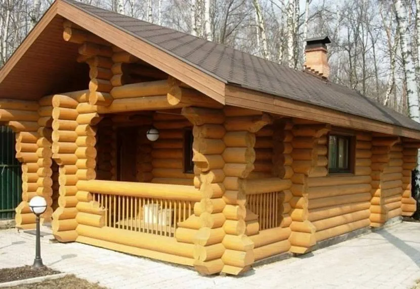 Баня из оцилиндрованного дерева с террасойИсточник topfonpack.ru