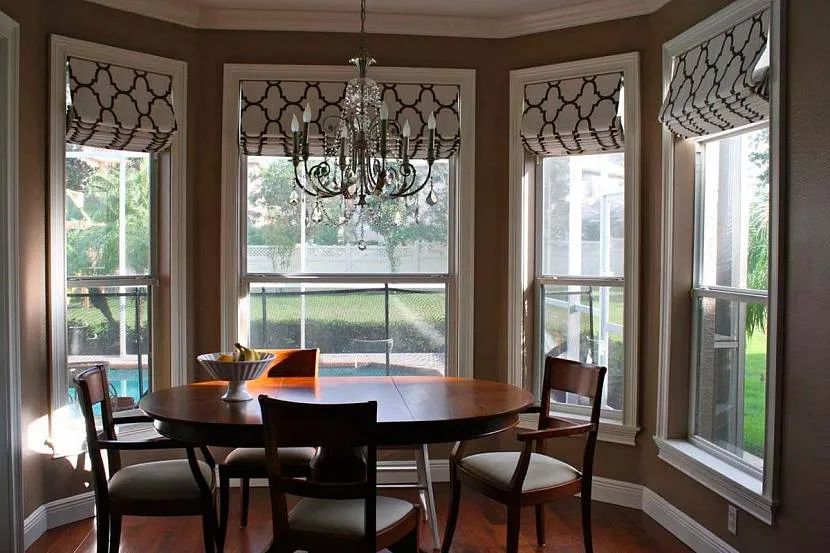 Красивые римские шторы на эркерных оконных проемахИсточник remontnichok.ru