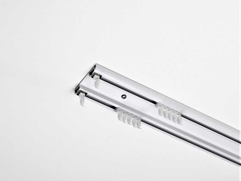 Шина. Это пластиковый или металлический профиль с полозьями для передвижения фиксирующих крючков для шторных полотен. Он может иметь разные размеры – ширина потолочного карниза зависит от количества полозьев (рабочих дорожек), а длина стандартная (2; 2,5; 3 м и т.д.).