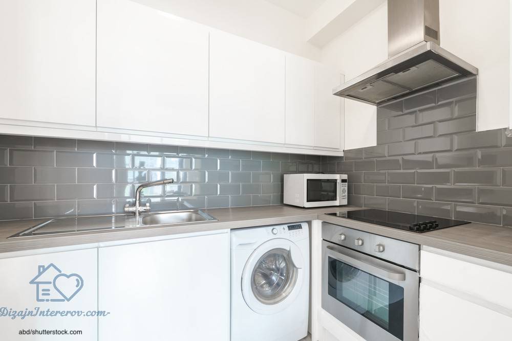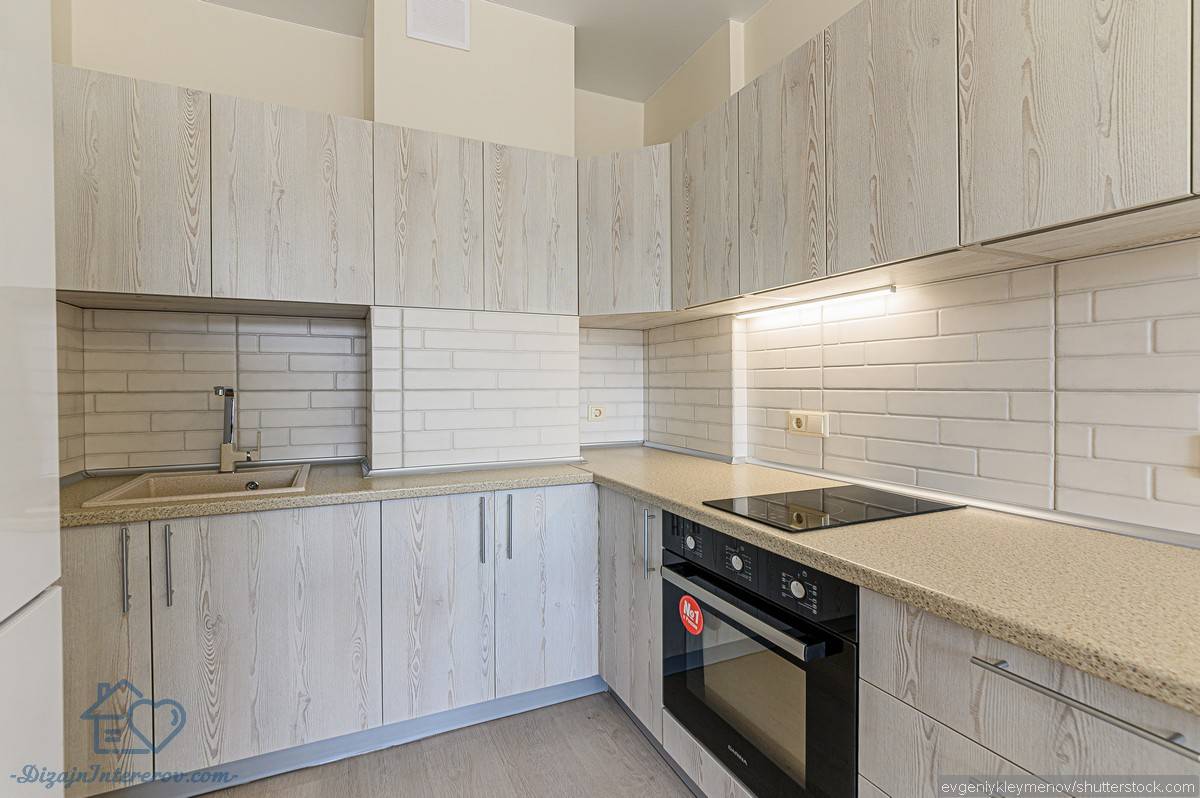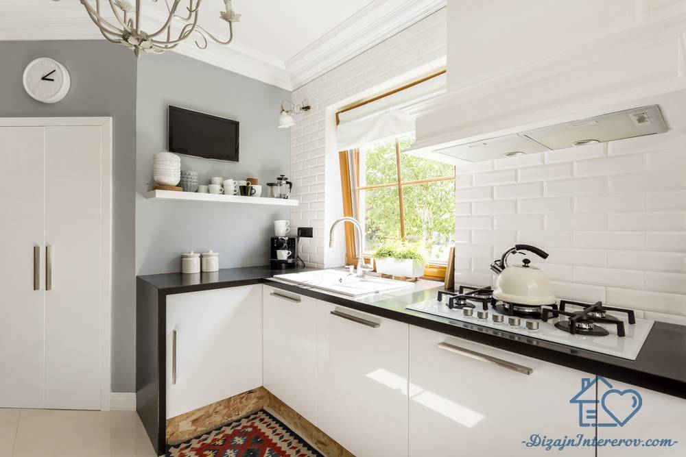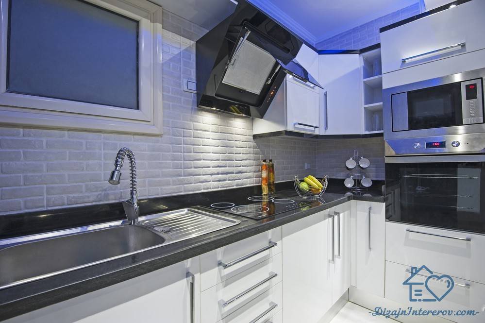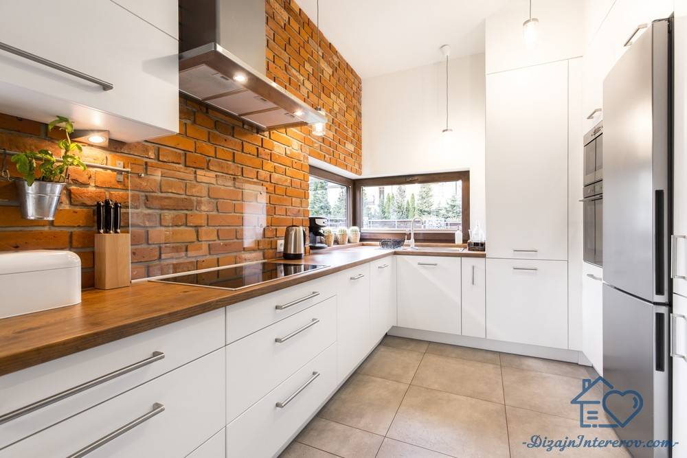 Стена из белого кирпича зрительно увеличит пространство маленькой кухни