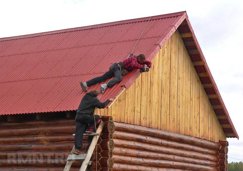 - Последний этап представляет из себя непосредственный монтаж: сначала- обрешетка, а далее- профнастил.