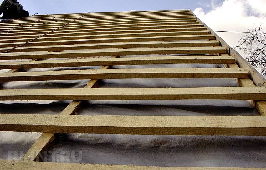 Рулонный стройматериал необходимо фиксировать рейками с шагом укладки 70 см, уложенные рейки не должны преграждать стекание осадков с кровельной поверхности. Минимальный наклон кровель такого типа должен быть 3°, чтобы вода стекала самостоятельно.