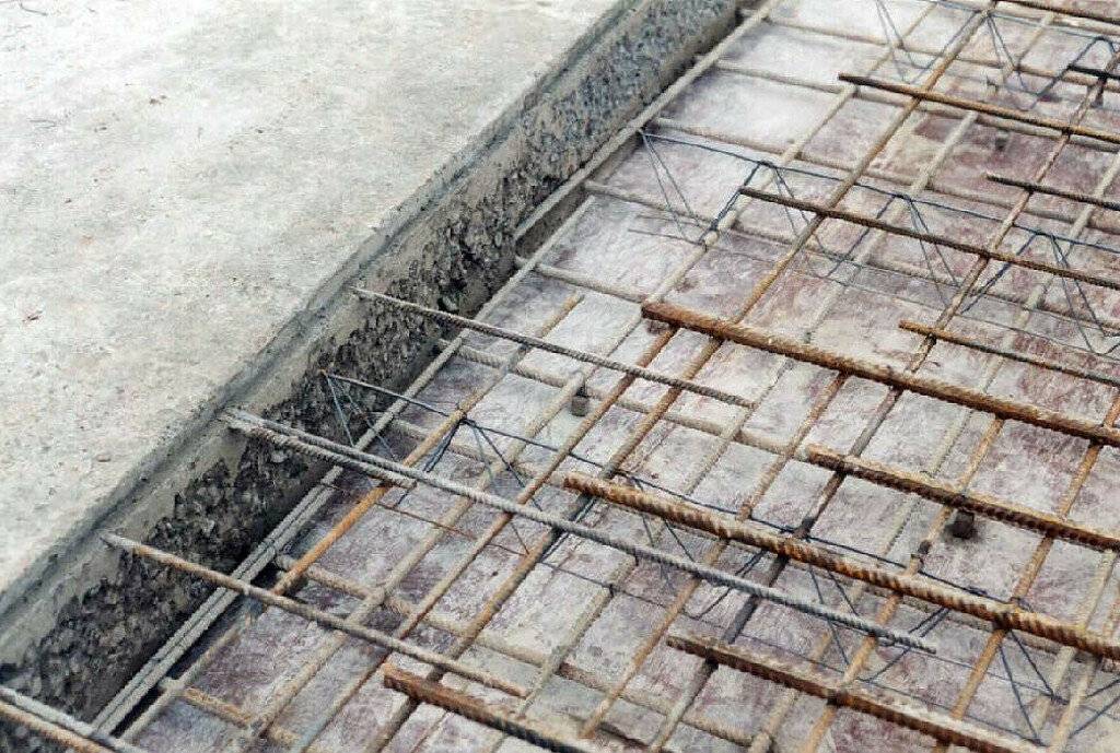 Арматуру связывают в каркас при помощи проволоки. Сварочный аппарат в этой ситуации использовать категорически не рекомендуется. Металл при сварке меняет свои качества, становится ломким и более подвержен коррозии. Состоит арматурный каркас из верхней и нижней сеток, жестко между собой соединенных, с расстоянием между прутьями 20-40 см. Расход арматуры у этого типа фундамента выше в сравнении с остальными.