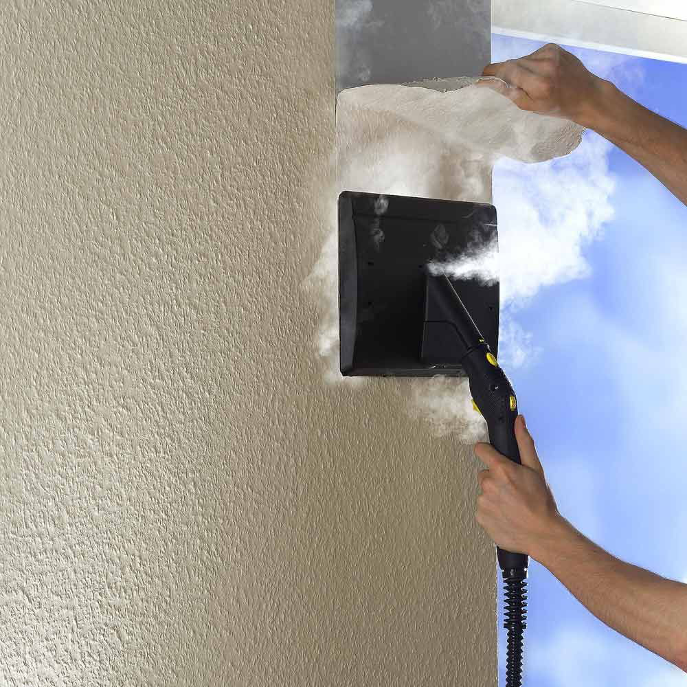 Для выполнения работ мастера используют специальный электроинструмент, работающий от электросети. В состав отпаривателя входит парогенератор и рабочая часть. Работы выполняются с обязательным соблюдением требований техники безопасности. Даже незначительное нарушение способно стать причиной появления сильнейших ожогов.