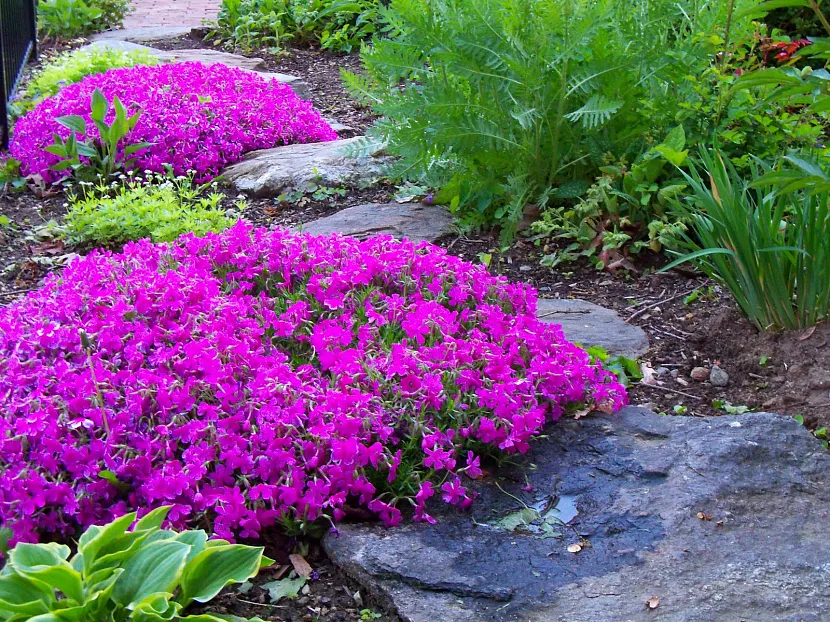 Цветник с ползучим розовым флоксомИсточник joomlamoduli.ru